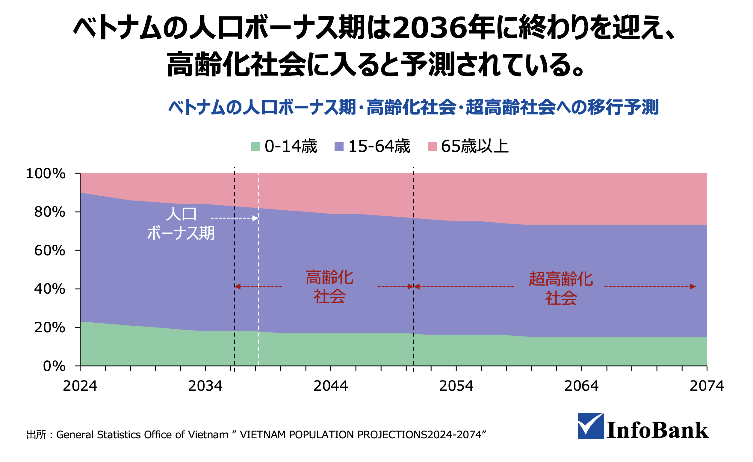 ベトナムの人口ボーナス期は2036年に終わりを迎え、高齢化社会に入ると予測されている。
