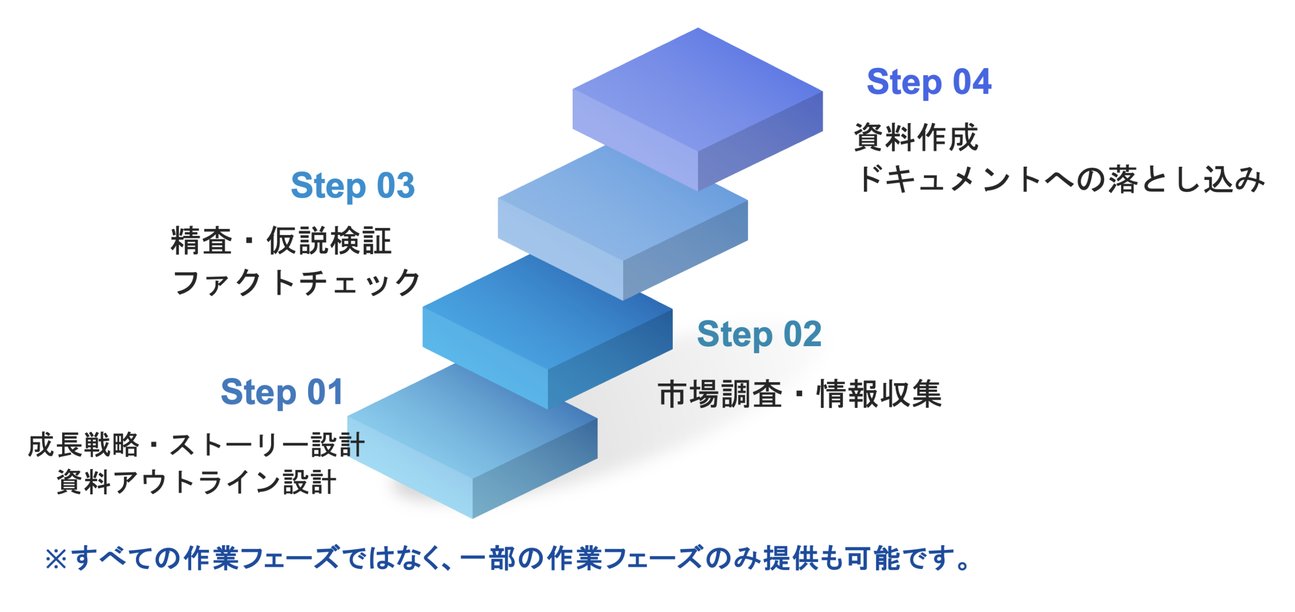 - すべての作業ステップではなく、一部のステップのみの作業サービス提供も可能です。